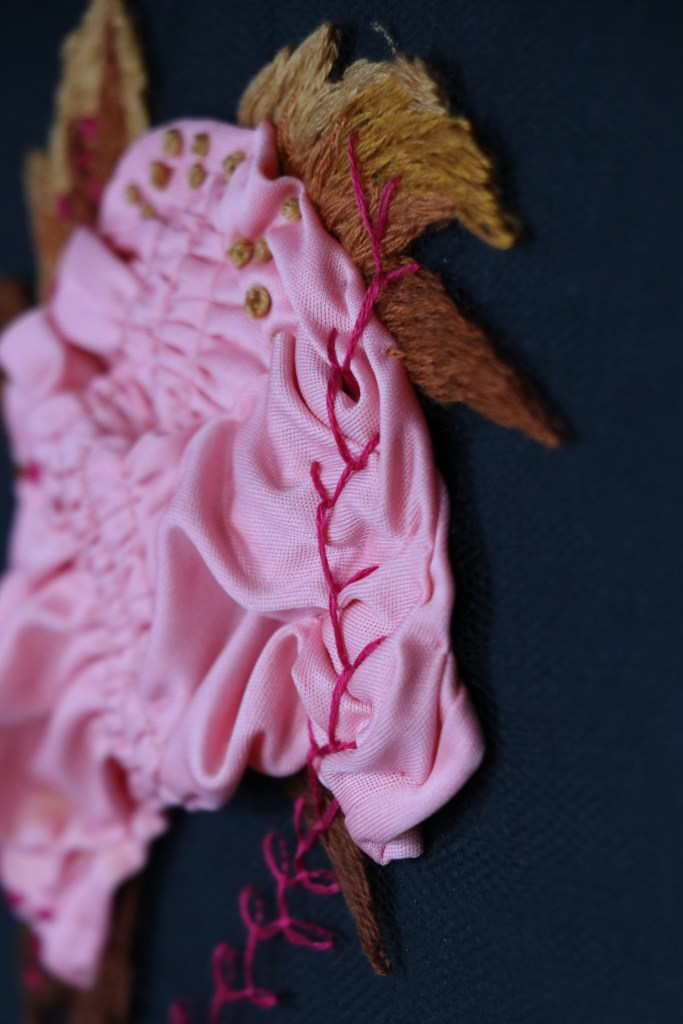 Técnica: bordado sobre tul y aplique de telas recicladas.