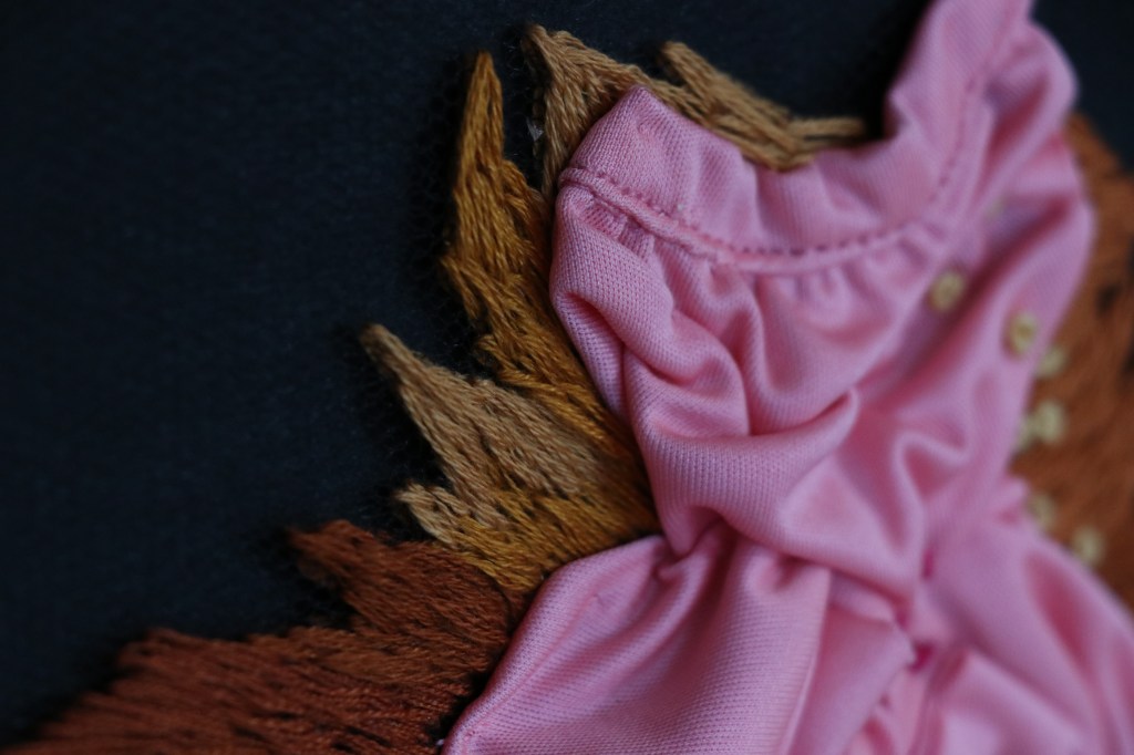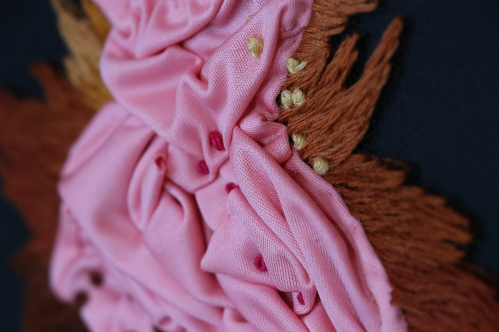 Técnica: bordado sobre tul y aplique de telas recicladas.