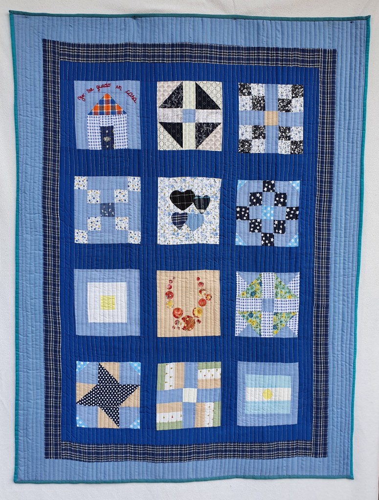 Reciclado de telas, patchwork y quilting, acolchado a maquina, aplique bordado a mano ,técnica needle paiting. Telas de camisas recicladas, telas teñidas, hilos de algodón, hilos de bordad mouliné.