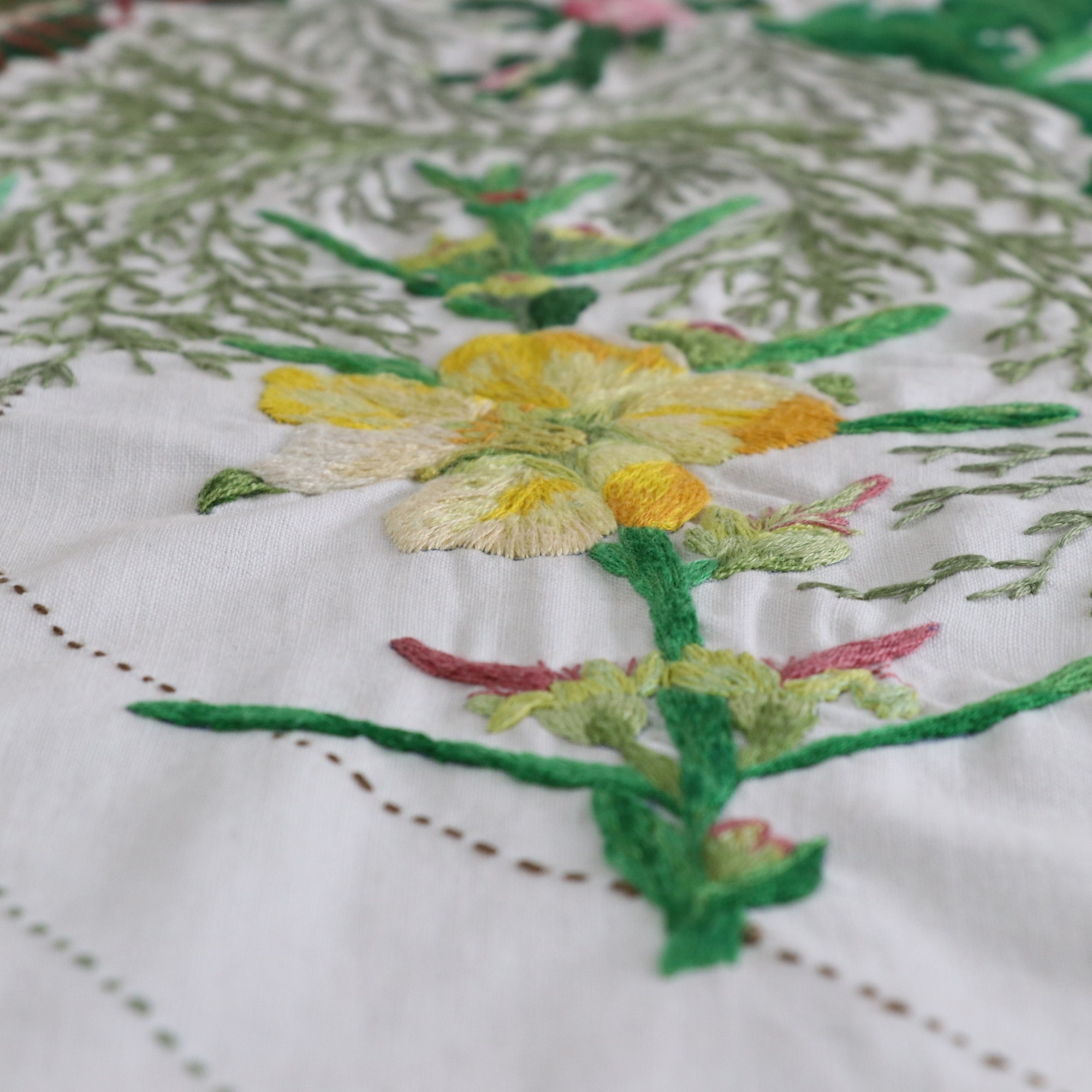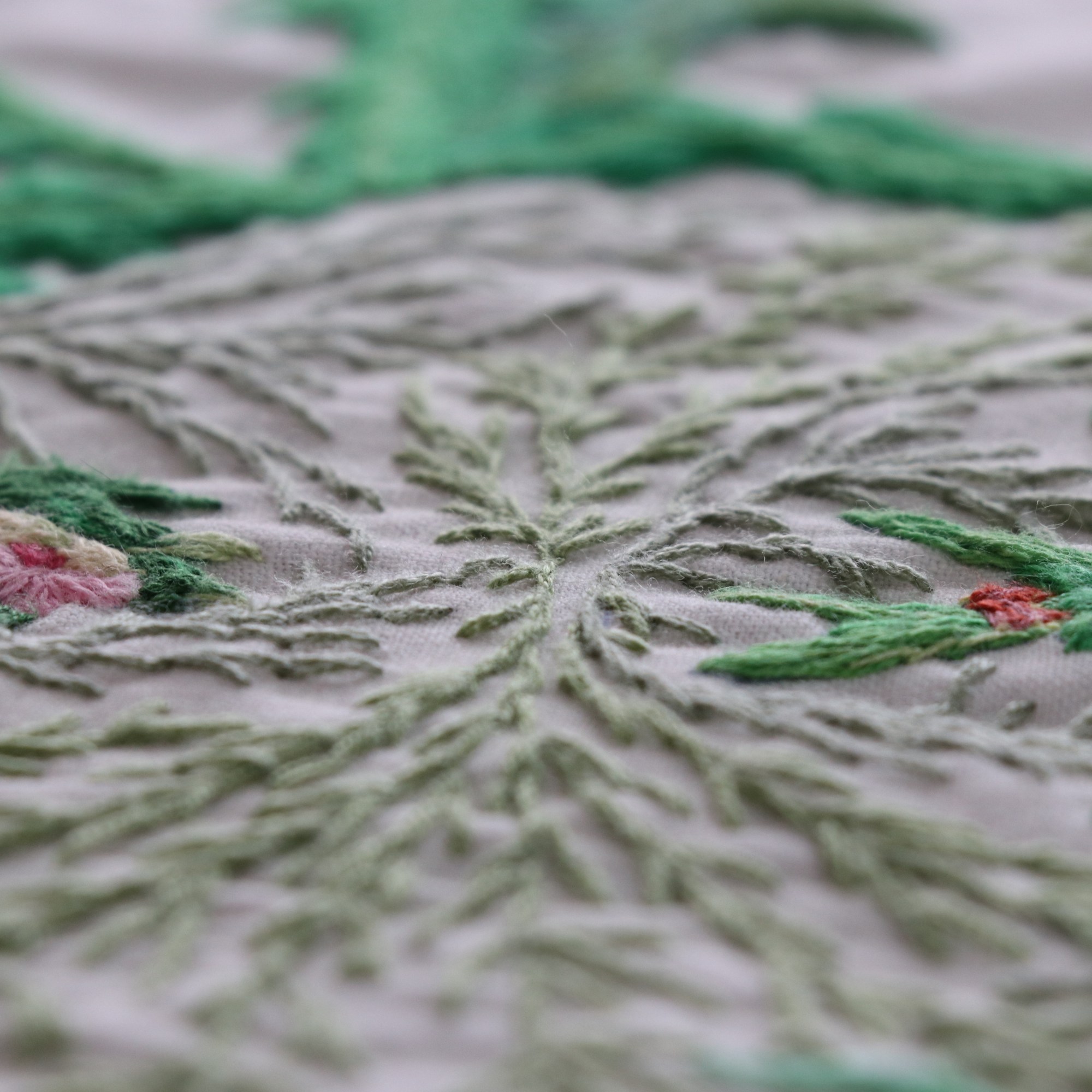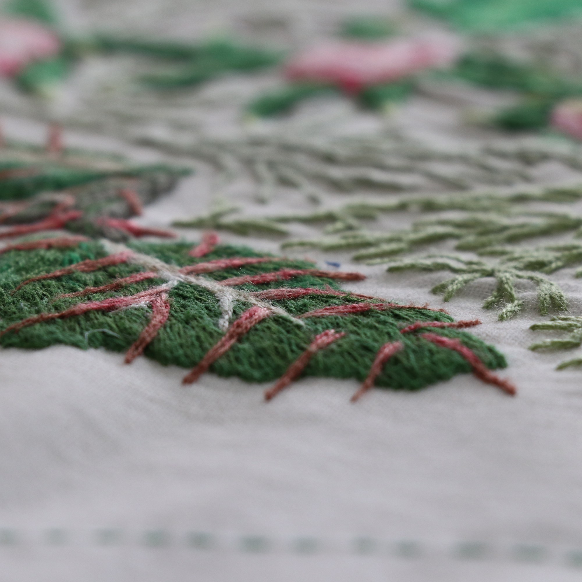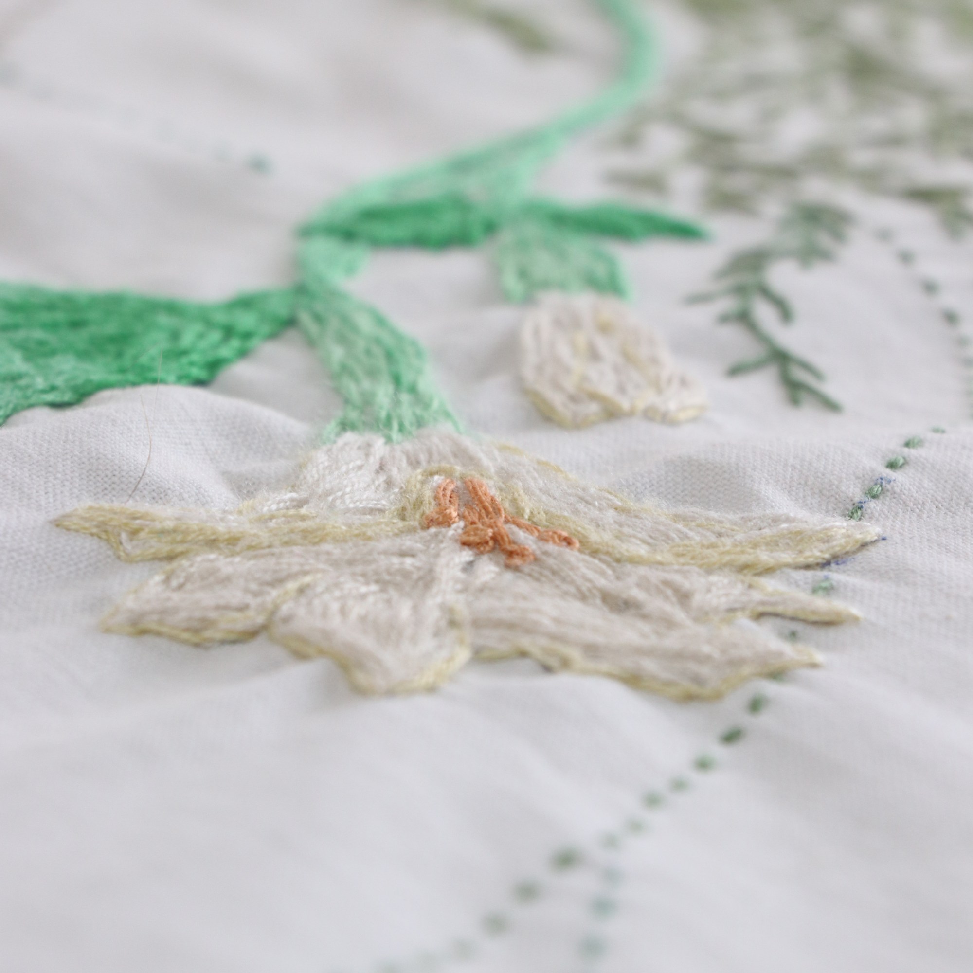 Técnica: bordado a mano needle panting sobre sábana de hilo antigua del casamiento de mi abuelo.