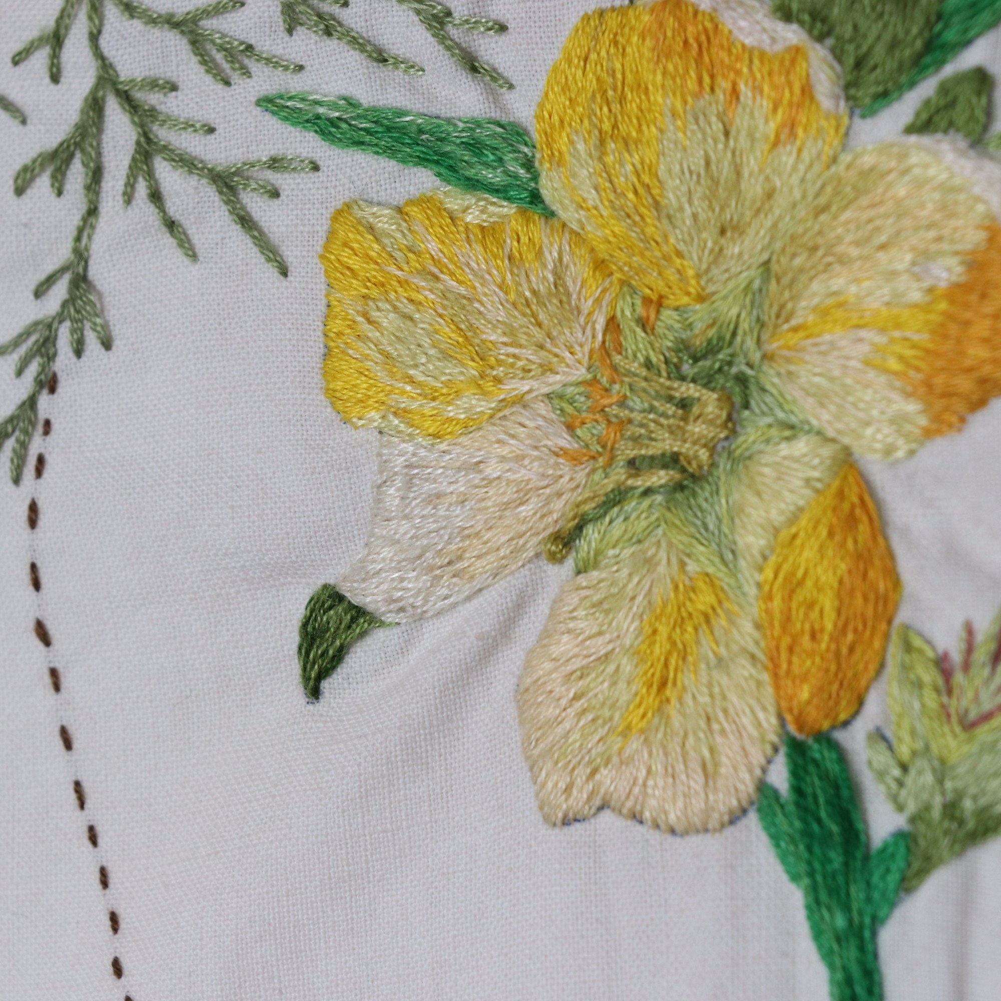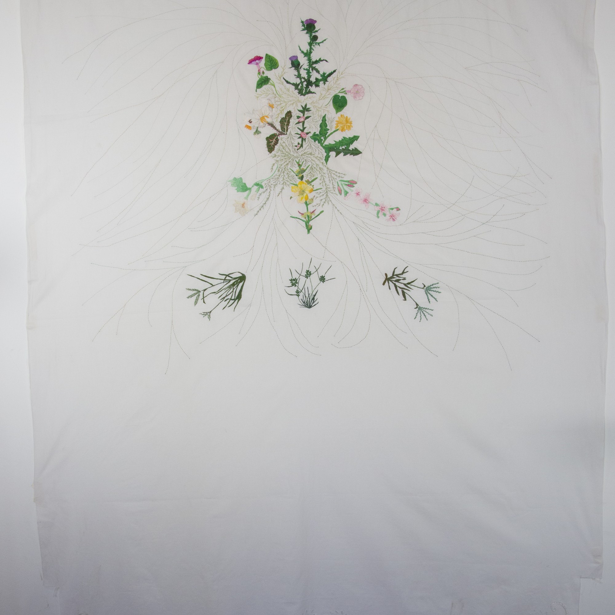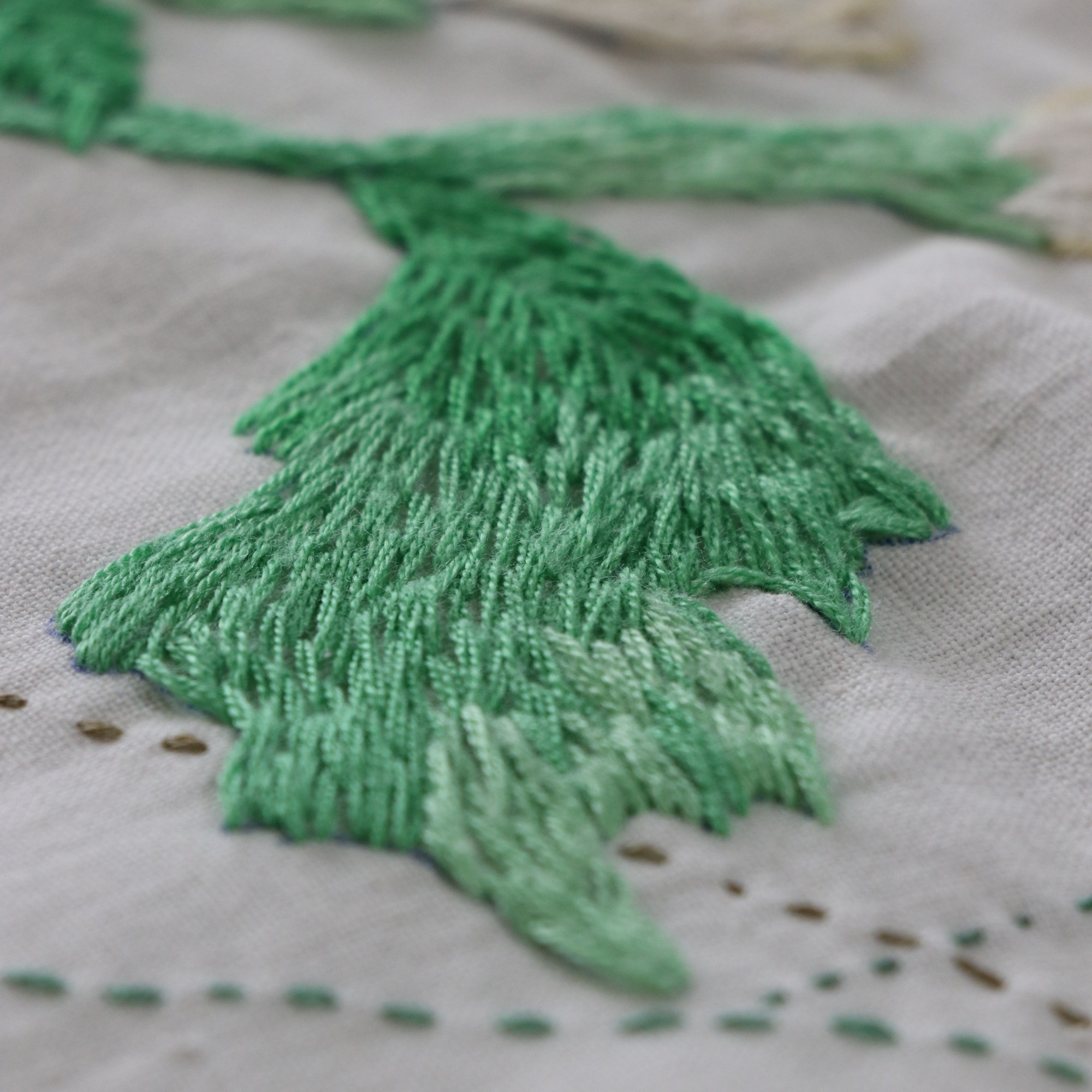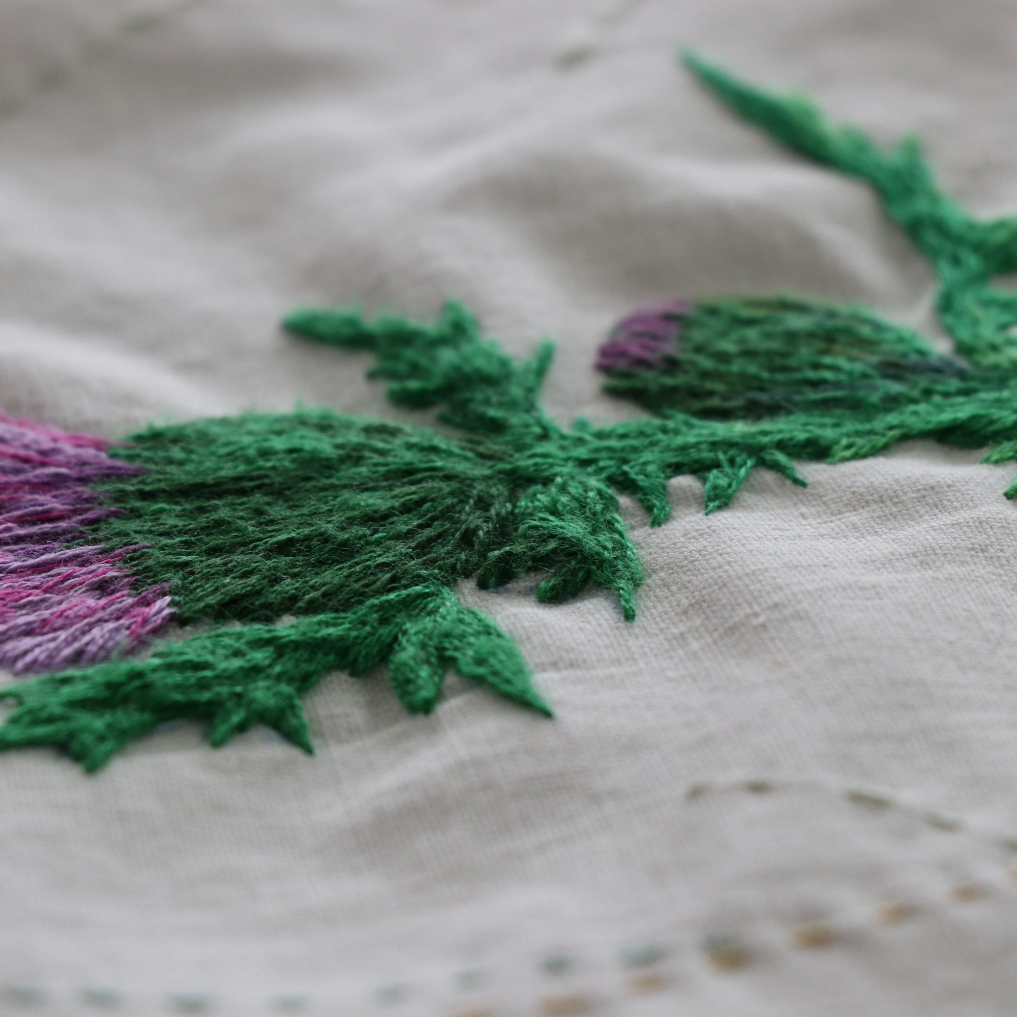 Técnica: bordado a mano needle panting sobre sábana de hilo antigua del casamiento de mi abuelo.